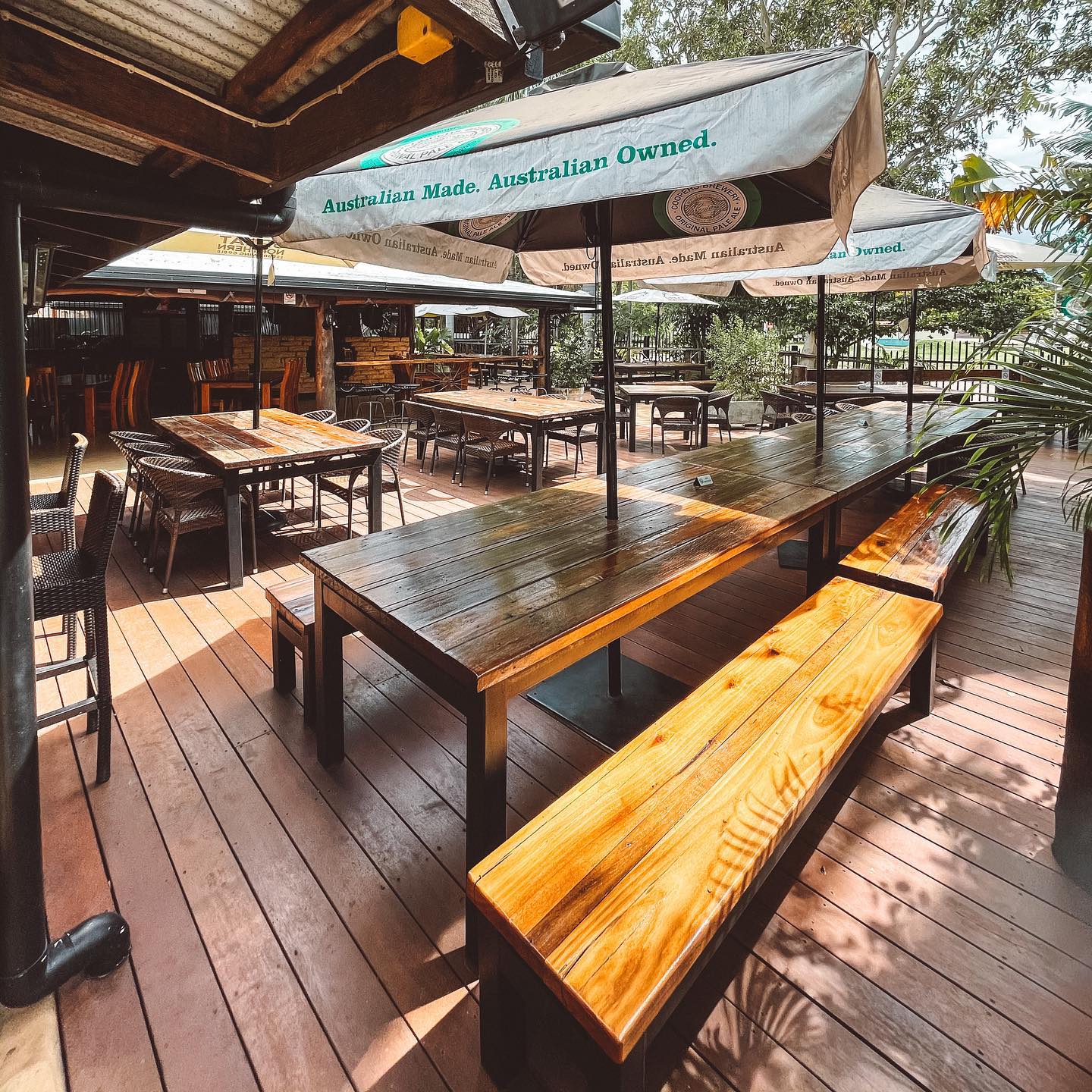 The mud brick (Made from termite mounds) and local timber buildings provide a relaxed ‘Top End’ atmosphere for locals and visitors alike. The building provides a unique and welcoming atmosphere.